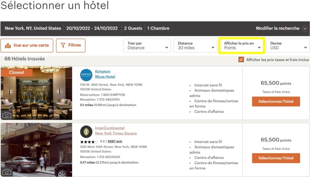 Le nombre de chambres accessibles grâce aux points est limité, il évolue d’un hôtel et d’un jour à l’autre.